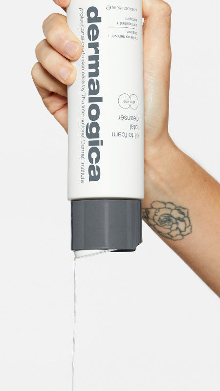 Le nettoyant Oil to Foam Total Cleanser, est un nettoyant tout-en-un qui combine une phase huileuse pour démaquiller et une phase aqueuse pour nettoyer afin d’éliminer le maquillage, la crème solaire, les débris, l'excès de sébum et les impuretés tout en laissant la peau instantanément douce et lisse*.