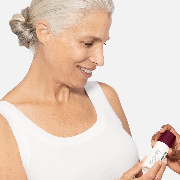 Après la cinquantaine, notre barrière lipidique s'amenuise, ce qui entraîne une rétention d'eau moins efficace et un risque accru de sensibilité et de déshydratation. Le stress et l'inflammation chroniques, tant à l'intérieur qu'à l'extérieur du corps, retardent le processus de régénération cutanée, provoquant ainsi des marques permanentes et des temps de guérison accrus. À ce moment, la peau peut présenter des ridules, rides, l'hyperpigmentation, une peau irrégulière, un teint irrégulier et des pores dilatés.