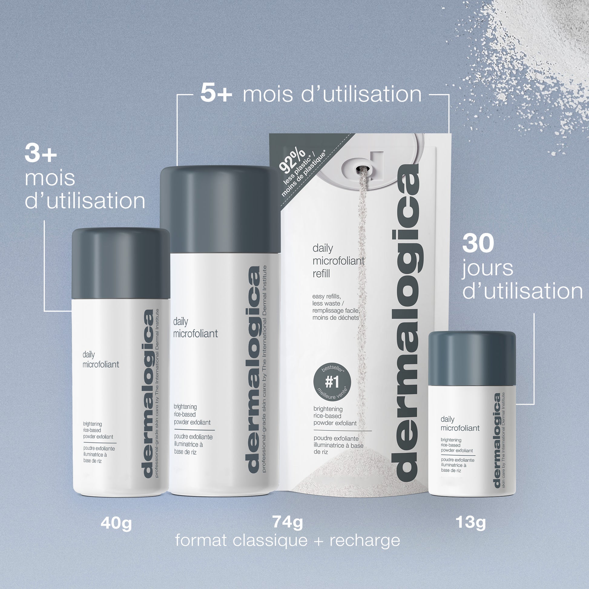 Vendu toutes les 30 secondes dans le monde, le Daily Microfoliant est à la fois un gommage mécanique et un peeling enzymatique doux quotidien, formulé avec de la poudre de riz. Riche en acides alpha-hydroxylés (AHA), elle s'active au contact de l'eau, libérant de la papaïne, de l'acide salicylique et des enzymes de riz pour éliminer les cellules mortes, lisser la peau et unifier le teint. Son complexe adoucissant à l'avoine colloïdale et à l'allantoïne aident à apaiser la peau, le rendant assez doux pour un usage quotidien.