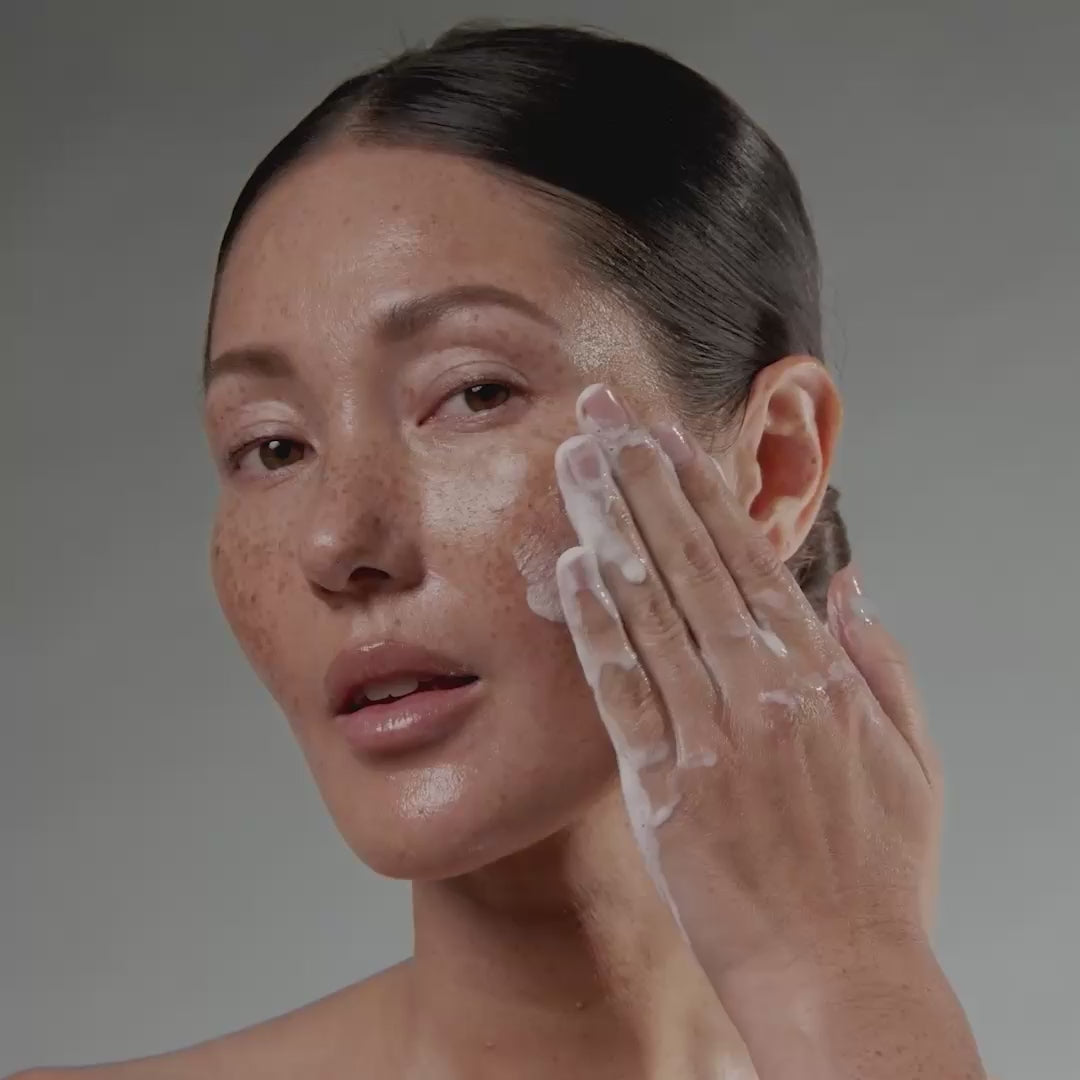 - Après le nettoyage, versez environ une demi-cuillère à café de daily microfoliant dans vos mains très humides et frottez-les afin de créer une mousse onctueuse.