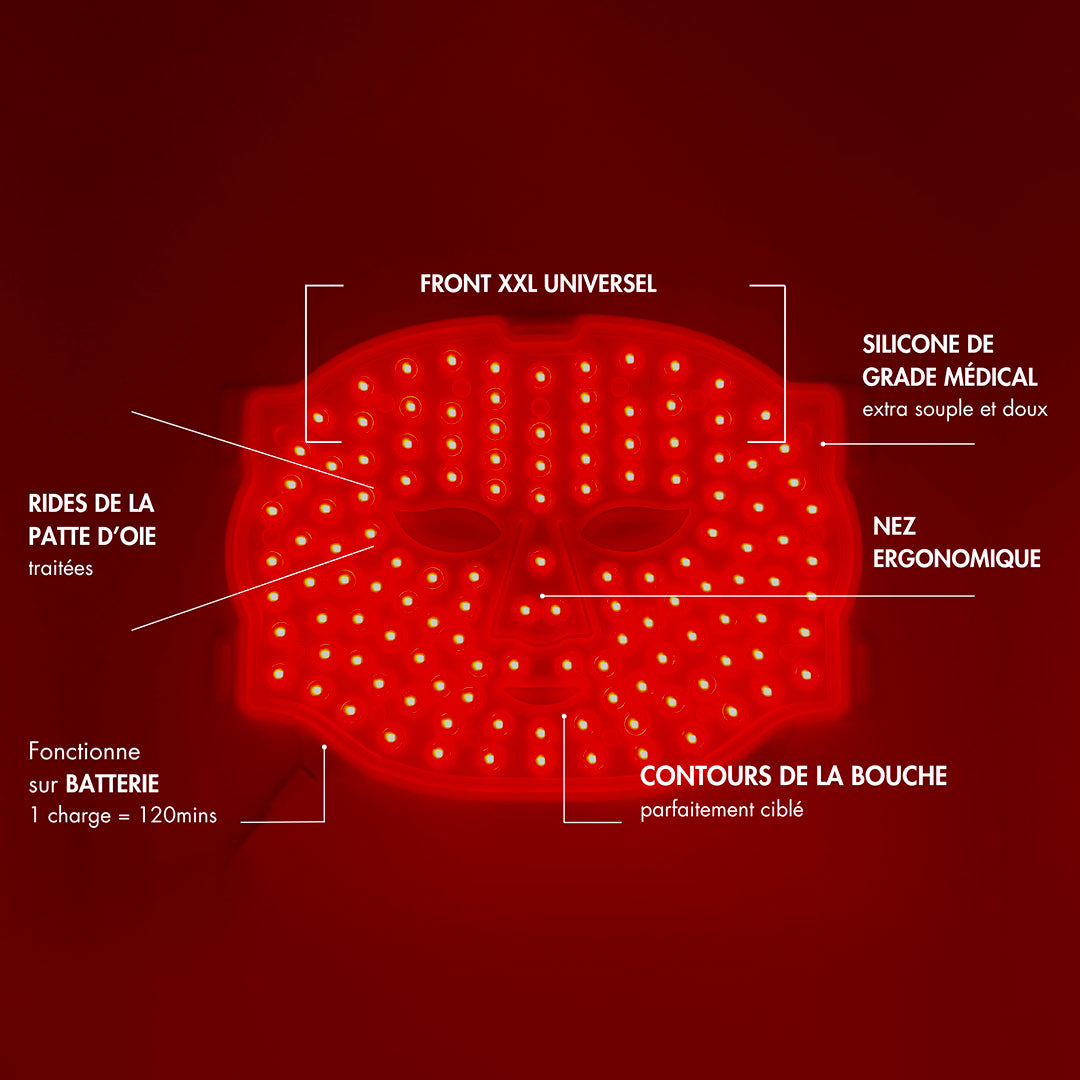 Utiliser le masque pendant 30 minutes hebdomadaires pour une expérience de photobiomodulation optimale et des résultats visibles.