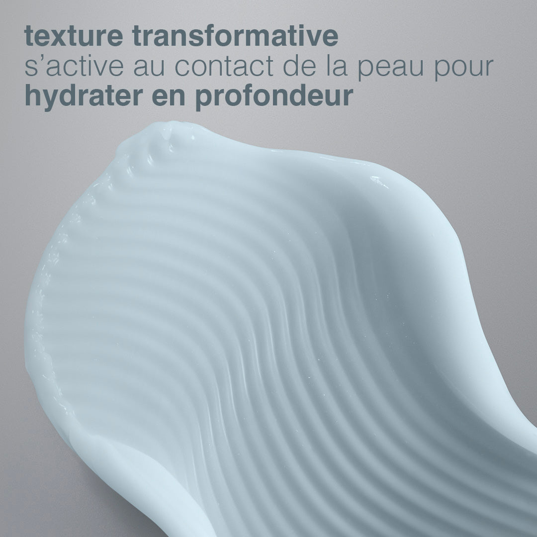 - Technologie qui casse-en-eau : hydrate en profondeur et repulpe la peau